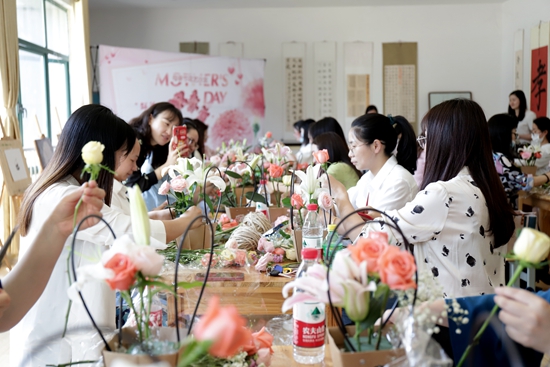 5月6日,为提前庆祝母亲节,喜迎党的二十大,我校心理健康教育中心在综合楼一楼书法协会教室开展“鲜花送母亲,红心献给党”母亲节花艺沙龙活动。来自全校各部门的45名教职工现场参与活动。