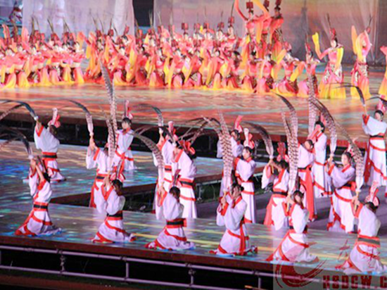 终于,开幕式来了。10月8日晚,183名女生穿上楚服、手执羽毛,羽衣蹁跹、清歌雅舞,大气磅礴之中,深刻展现了荆楚文化元素。