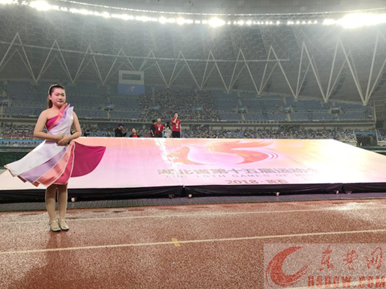 10月8日,湖北省第十五届运动会在黄石奥体中心开幕。刘杏举牌引导武汉体育代表团入场,展示了黄石女儿的礼仪之美。