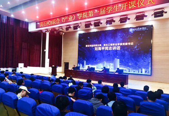 10月12日,黄石PCB联合(产业)学院举行第一届学生开课仪式。市政协副主席、鄂东职教集团党委书记、湖北工程职业学院党委书记刘海平出席仪式并强调,要抢抓机遇,创新机制,为黄石电子信息产业培养更多更优质的技能技术人才。