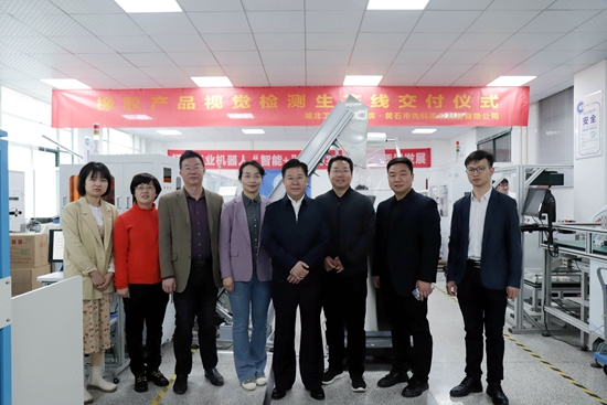 交付仪式上,左治勇向刘主席介绍了回母校寻求横向项目解决企业痛点的历程,他表示非常感谢母校师生团队研发的自动化检测产线,将会推动企业继续朝着技改的方向发展,后续会有更多的项目合作;同时,也表示通过项目合作也有效的为企业减轻了用工上的压力,提升了企业产品检测的效率和合格率。