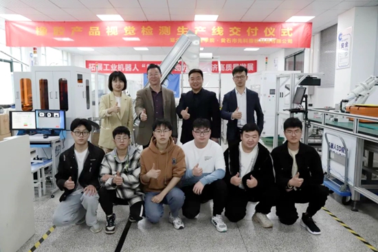 短短三个月的时间内,学校团队就成功研发出了他想要的设备。之前,该公司橡胶垫圈通过人工的形式进行检测,速度慢、数控把控不准确、质量控制不好,效率约为每分钟30个,准确率约为80%。现在,使用我校自主研发的机器视觉检测自动化生产线设备,检测效率可达到每分钟约200个,准确率提高至99%以上,生产线实现全自动智能,几乎无需人为干预。左自勇表示:“后期,我们也会和学校开展深度合作,研发制作前期自动化设备、包装和储存自动化设备等。”