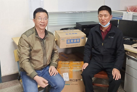 智能制造学院党总支书记王青云代表学校收下这批物资,送到学校后勤管理中心库房。我校党委书记刘海平感谢杨先生的善举,表示一定会把这批物资用到学校疫情防控第一线。