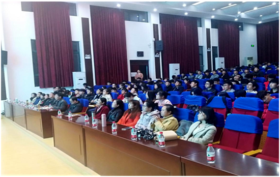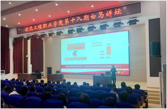 报告会上,汪丽华以“改革开放40年:改变中国 影响世界”为题,立足改革开放40周年前后对比实况,回忆历史、陈词当下、筑梦未来,把过去的创业艰难、现在的迎风奋进、将来的辉煌感召并联在一起,将改革开放的时代精神诠释得淋漓尽致。她用鲜明的数据和朴质的语言,讲述了改革开放40年来我国发生的巨大变化,与大家一起回忆弥足珍贵的历史画面,一起分享改革开放的伟大创举,一起放飞民族振兴的时代梦想,一起述说党和国家改革进行到底的决心和信心,全面阐述了改革开放的时代意义和历史价值。其中,她着重引导大家学习领略了习近平总书记提出的“人类命运共同体”的精神意涵,将“一带一路”的时代创举作了深入细致的解读,激发大家的民族自豪感和自信心。最后,她号召在场学生,要肩负起时代赋予的使命和职责,造就高尚的人格、练就过硬的本领,在我国改革开放的伟大征途上贡献自己的光和热。整场报告,主题鲜明、逻辑分明、史料丰富,既有理论深度,也有现实热度,将历久弥新的中国故事、与时俱进的中国精神和改革开放的中国智慧紧密联系在一起,在场师生受益匪浅、感受颇深。