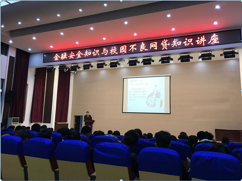 为进一步落实教育部和中国银监会发布《关于加强校园不良网络借贷风险防范和教育引导工作的通知》和《教育部办公厅关于开展校园网贷风险防范集中专项教育工作的通知》(教思政厅[2016]3号)文件精神要求,做好学生校园网贷风险提示,加强金融、网络安全知识宣传普及力度,12月27日,我校学工部组织开展了校园网贷风险防范专项教育活动。平安银行武汉分行经理雷陈舟受邀来到我校,为300余名学子带来了一场以“金融安全知识与校园不良网贷”为主题的讲座。讲座由学工部部长杨冬伟主持。杨冬伟首先向同学们介绍了几起发生在我校校园内的网贷现象,强调了校园网贷风险防范的重要性。他提出:“希望同学们保护好自己的个人信息,了解并掌握金融安全防范措施,抵制不良校园网贷。“雷陈舟结合非法和不良网贷侵蚀校园,部分不良网贷平台通过虚假宣传的方式和降低贷款门槛等手段,诱导学生过度消费、超前消费甚至为此背上高利贷的真实案例,对预防和警惕不良校园网络贷款风险等问题进行了深入分析,讲授了常见的校园网贷危机及金融诈骗应对措施。他还为同学们讲解了相关金融信贷知识。