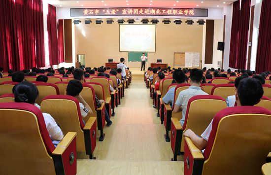在讲学中,他将一代诗仙李白比做“诗匠”,将一代词圣苏东坡比做“词匠”,通过梳理历史中“诗匠”李白和“词匠” 苏东坡与黄石的渊源和交集来讲这两位匠人与黄石的故事。他通过讲解李白因安史之乱到夜郎(今贵州桐梓)途径西塞山驿站的一首诗《流夜郎至西塞驿寄裴隐》和苏东坡从杭州被贬到黄州经常到黄石磁湖游玩的一些词,讲出两位诗词巨匠与黄石的历史故事,引人入胜,让在坐的师生们耳目一新,讲课过程中被同学们报以多次掌声。“虽然李白、苏东坡在官场上有些不如意,但从这两位巨匠的诗词中亦然还能感受到他们对美好生活的向往,对美好未来的执着追求!”通过这两位巨匠诗词中所表现出来的正能量来激励我校学子奋发向上,成为一名“大国工匠”。